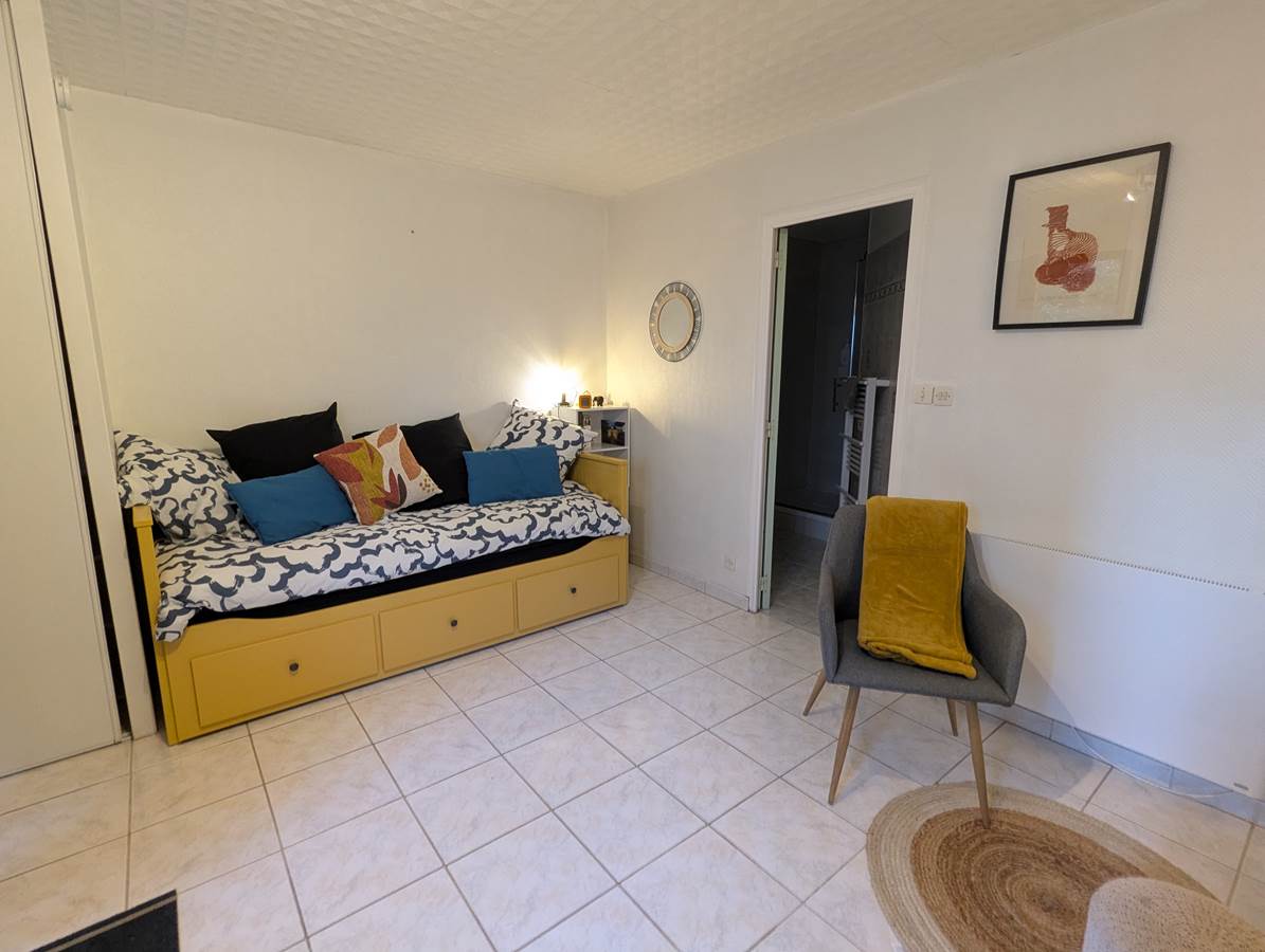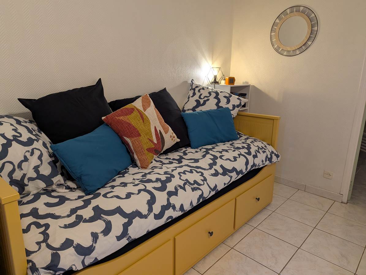 - Un espace de couchage : lit banquette une place convertible en lit deux places.